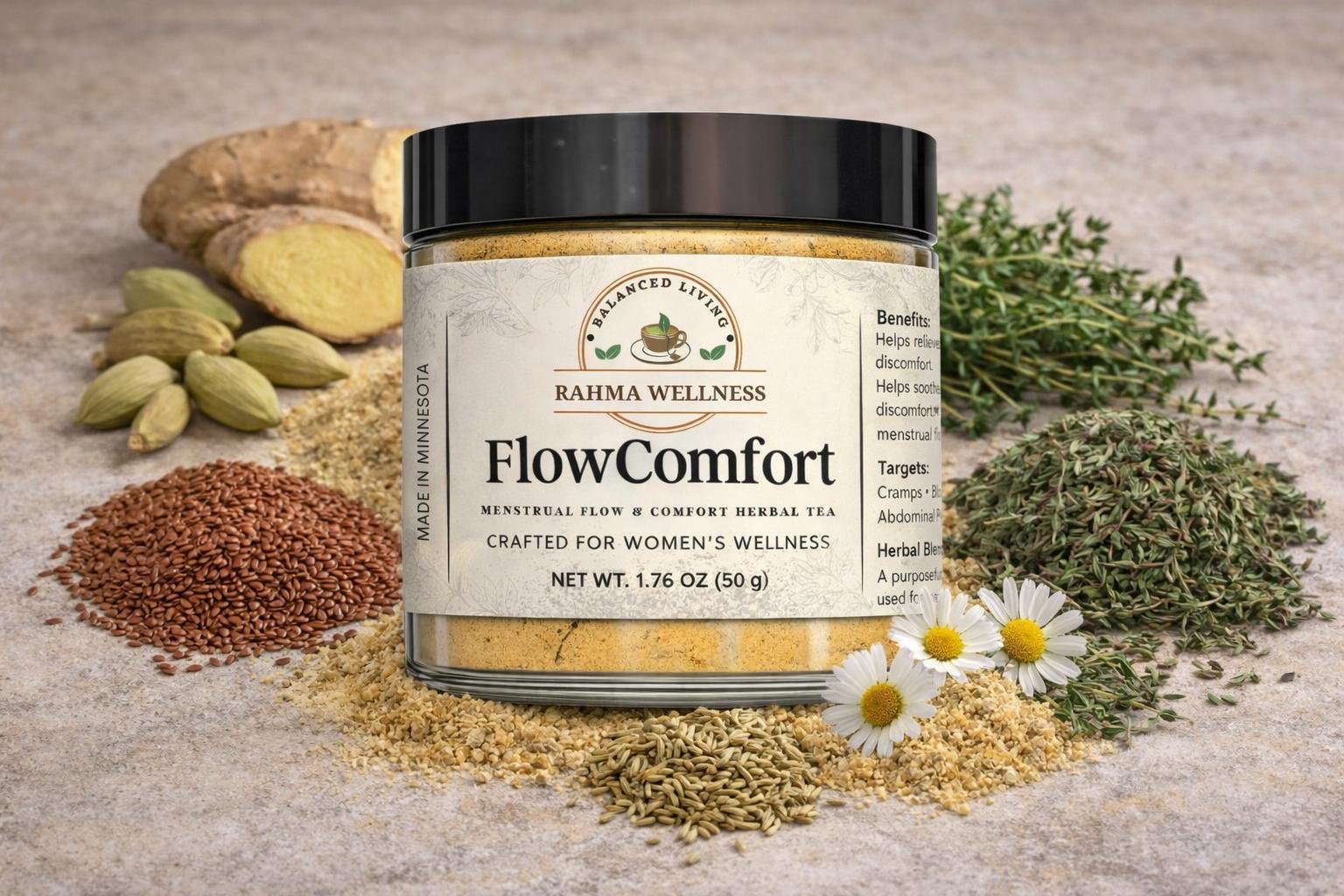 A soothing herbal blend crafted to support comfort and balance during your monthly cycle.